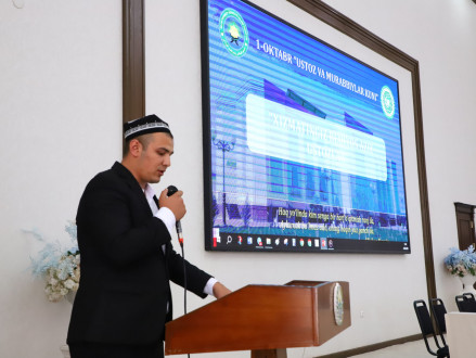 Тадбирда таълим муассасаси директори К. Исламов ўз сўзида устозлик касбининг нақадар шарафли ва масъулиятли эканлигини таъкидлаб, барча устоз ва мураббийларни ушбу қутлуғ сана билан самимий муборакбод этди. Шундан сўнг Ўзбекистон мусулмонлари идораси раиси, муфтий шайх Нуриддин Холиқназар ҳазратларининг табрикномаси ўқиб эшиттирилди.