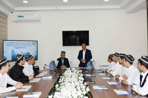 “Имом Термизий” ўрта махсус ислом таълим муассасасида араб тили фанига оид “Тасриф” номли янги қўлланма ҳамда “Сарф илмидан амалий машғулотлар дафтари” тақдимоти ўтказилди.