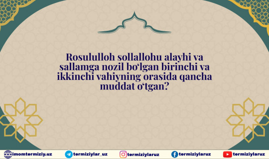 Росулуллоҳ соллаллоҳу алайҳи ва салламга нозил бўлган биринчи ва иккинчи ваҳийнинг орасида қанча муддат ўтган?