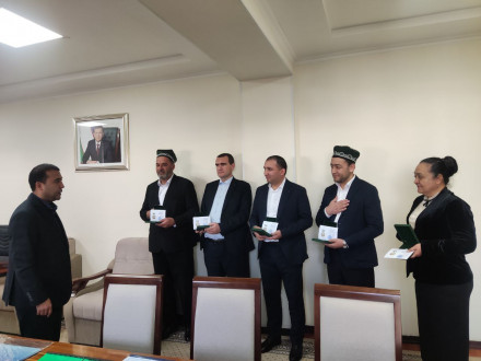 Мазкур мукофотни Сурхондарё вилояти ҳокимининг жамоат ва диний ташкилотлар билан алоқалар бўйича ўринбосари А.Абдураҳманов топширди. Ушбу кўкрак нишони билан “Имом Термизий” ўрта махсус ислом таълим муассасаси маънавий-маърифий ишлар бўйича директор ўринбосари Имомиддин Бобоқулов ҳам тақдирланди.