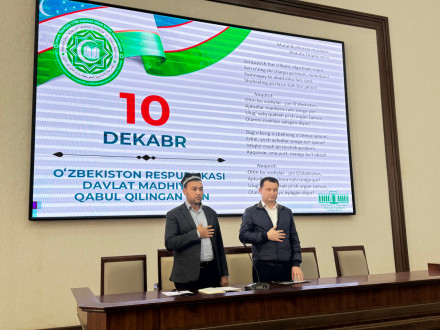 “Имом Термизий” ўрта махсус ислом таълим муассасасида “10-декабрь – Ўзбекистон Республикаси Давлат Мадҳияси қабул қилинган кун” муносабати билан маънавий-маърифий тадбир ташкил қилинди.